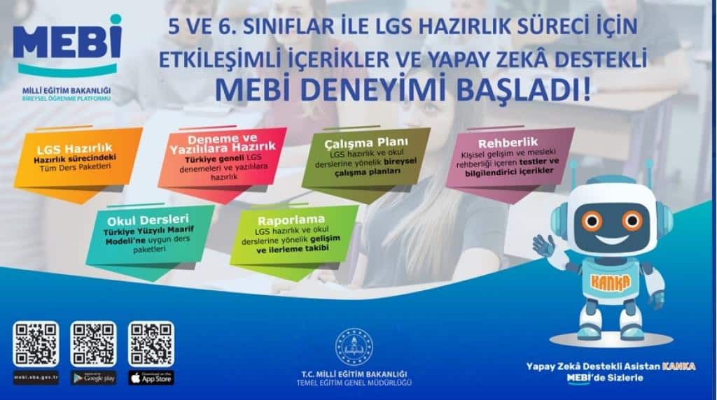 MEBİ, Bakanlığımız tarafından geliştirilen, öğrencilerin bilgi birikimi, deneyimleri ve yeteneklerini dikkate alarak öğrenmeyi kişiselleştiren yenilikçi bir dijital öğrenme platformudur. Öğrencilerin ihtiyaçlarına ve öğrenme tarzlarına uygun materyaller sunan MEBİ, öğrenme süreçlerinde öğrencilerin aktif rol almalarını sağlar ve bireysel gereksinimlere uygun içeriklere erişim imkânı tanır.Daha ayrıntılı bilgiye ulaşmak için bakanlığımızın hazırladığı MEBİ sitesini ziyaret edebirsiniz